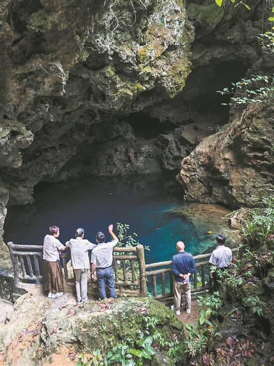 注:图为 2025年5月广东省作协采风团考察梅县区隆文镇著名景点绿窟潭。