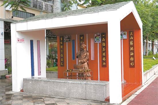 擂茶文化街的雕塑展示着揭西擂茶文化 陈锴跃 摄