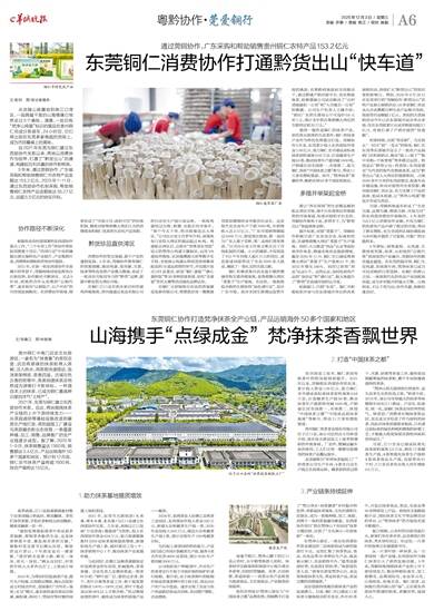 2021年,东莞市大朗组团(大朗镇、樟木头镇、东坑镇)与江口县建立东西部协作关系。几年来,两地以江口发展“万亩茶海+微旅游”为契机,投入东西部协作资金624万元,助力怒溪镇骆象村2200亩抹茶基地提质增效,新建初级生产线1条、强村富民工坊1个、抹茶销售中心1个,推动抹茶产业延链补链。