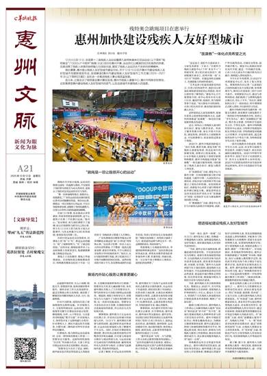 “办好一场会,提升一座城”,12月10日,惠州发布《方案》,明确进一步增进残疾人福祉,加快建设残疾人友好型城市,更好满足残疾人对美好生活的向往。