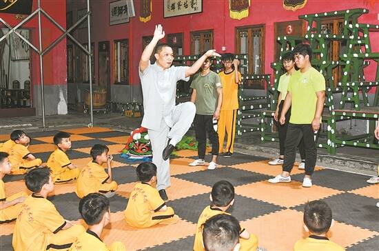 为了将武术文化传承下去,揭阳构建了“校园筑基、社会普及、赛事引领”的全民习武体系。全市中小学普遍开展“武术+英歌进校园”活动,推广南枝拳校本课程,将英歌纳入体育或第二课堂。在黄传善武馆,暑期南枝拳义务传承培训班已持续开办近20年,教练黄志乾每周三和周六晚上都会带领学生们练习南枝拳的套路和基本动作。他说:“这些培训都是义务的,就是希望更多人了解、学习南枝拳,把这份文化遗产传承下去。学习南枝拳对身体的耐力、意志力、爆发力、反应能力都有很大的提升。”