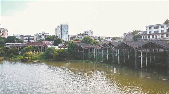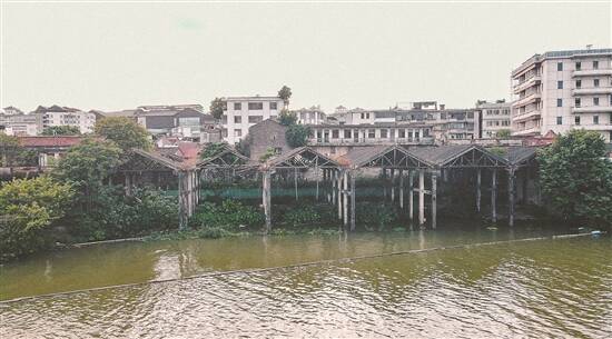 2017年退市后,老船厂建筑旧址逐渐被搁置废弃,成为城市里的一处“工业遗迹”。江边几栋孤零零的房屋和厂房杂草丛生,不少地方已经坍塌,多处挂着“请勿靠近”的警示牌。从水门桥东侧隔江看过来,仍能清楚地看到老船厂残存的建筑架构。但出于安全考虑,大部分建筑区域已被围蔽起来。尽管老船厂已经破败废弃,倒也与草青水静的宜人景色相映成趣,成为惠州老市民垂钓追忆的好去处。