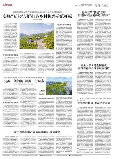 1月6日,农业农村部发展规划司发布《2025年国家乡村振兴示范县创建名单公示公告》,其中梅州市梅县区入选该名单。梅县区是叶剑英元帅的故乡、原中央苏区、革命老区,总面积2483平方公里,人口61万。近年来,梅县区全力推进乡村振兴,促进城乡融合发展,大力发展以金柚、绿茶为特色的主导产业,有国家级现代农业产业园1个、省级现代农业产业园2个,有区级以上农业龙头企业190家、农民专业合作社857家、家庭农场2514家,有梅州市首个电子商务产业园,有广东省乡村民宿示范点4个、广东省乡村民宿示范镇1个、广东省乡村旅游精品线路3条。