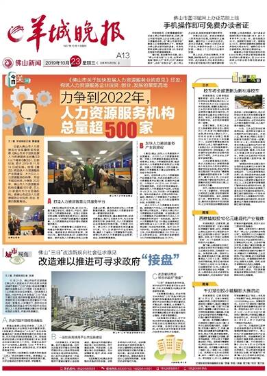 记者从佛山市人力资源和社会保障局官网获悉,《佛山市关于加快发展人力资源服务业的意见》(以下简称《意见》),日前印发,将于