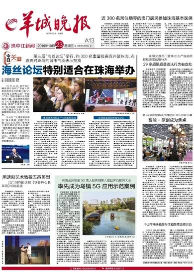 羊城晚报讯 记者钱瑜、郑达 ,通讯员黄文婷摄影报道:10月20日,第六届世界互联网大会正式在浙江桐乡乌镇启幕。凭借在5G应用上的深耕与推动,作为本届大会“硬科技”——珠海云洲智