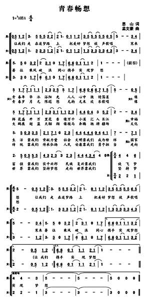 所以到了“五四”青年节时,在中央广播电视总台制作的“五月的鲜花”全国大中学生文艺会演中,《青春畅想》又唱响了。此外《青春畅想》还常常出现在各个大学的校园合唱、新生推广宣传片中,它的舞曲风格,赋予了它又唱又跳的活力,如孟文豪当初创作它时所设想:“当歌声响起,整个广场千人跳起舞来,那是青春的脉搏在律动。”