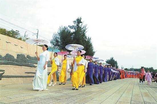 一场惊艳的旗袍秀,在深圳宝安西湾红树林公园上演。日前,第五届魅力宝安旗袍艺术秀开幕,数百爱好者身着各式各样的旗袍漫步在诗情画意的碧海湾畔,向市民展示传统传统文化的魅力。 旗袍作为中国的传统服装,国色天香,优雅大方。身着旗袍的女子,是流动的诗,出水的莲,古典的花。魅力宝安旗袍艺术秀已连续举办5年,前后吸引了2000多名女性参与。本届艺术秀由宝安区文联指导,西乡街道党建工作办(妇联)大力,福之涌文艺社主办,当天共吸引了300多名旗袍爱好者参与,大家款款行走在碧海边,用曼妙身姿,诉说着绝世风雅,她们回眸一笑成为这个冬天里西湾畔最靓丽的风景。 西乡街道党工委委员李金宇表示,今年原本计划接受100人报名参与,但最终实际走秀爱好者超过300人,充分说明了旗袍和中国传统文化的魅力。 当晚举行的旗袍展演上,来自松岗旗袍协会带来的旗袍秀《水乡新娘》、福永聚福社区代表队的旗袍秀《红枣树》、新桥玉如春代表队旗袍秀《花好月圆》以及新安维娜幸福代表队的《红枣树》等,一一惊艳亮相。这些女子或优雅大方,或自信昂扬,或清丽脱俗,现场观众纷纷拿起手机,把这些美好的瞬间永远留下。 (朱文庆 瞿明光)