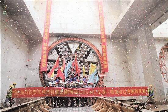 文/图 羊城晚报记者 余宝珠 通讯员 刘娜 左鹏鹏 建设中的东莞市轨道交通1号线又有新进展,记者2月1日获悉,1月31日上午11时8分,伴随着“莞通1号”盾构机刀盘破墙而出,东莞市轨道交通1号线滨江体育馆站—莞太路站右线盾构区间顺利洞通,这也是全线首个洞通的盾构区间,标志着东莞地铁1号线盾构区间施工取得了阶段性成果,对引领全线盾构区间施工,全力加快推进项目建设具有重要意义。据悉,在东莞市政府及各参建方的大力支持下,中铁南方有限公司、中国中铁五局承建的东莞市轨道交通1号线一期工程1301-4工区滨江体育馆站—莞太路站建设进展突出。 东莞市轨道交通1号线一期工程滨江体育馆站~莞太路站盾构区间于2020年8月28日完成全线首发以来,“莞通1号”连续下穿厚街水道、东引运河,并侧穿鸿福路跨河桥等风险,经历156个日日夜夜,施工单位中铁五局发扬不畏艰险、顽强拼搏的铁军精神,于2021年1月31日完成洞通。 据悉,东莞市轨道交通1号线(望洪站至黄江中心站)总长57.46公里,设车站24座、车辆段和停车场各1座。东莞1号线贯穿城区西北至东南方向快捷交通联系,具有线路长、速度快、内聚外联等特点,应用全自动无人驾驶、BIM等前沿技术,最高设计速度为120公里/小时,建成后,将与已开通的东莞地铁2号线实现 “十”字交叉换乘,未来东莞地铁1号线将与广州、深圳轨道交通互联互通,为粤港澳大湾区建设提供强有力的交通基础设施支撑。