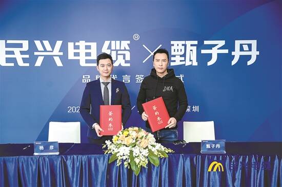 民兴电缆与国际巨星甄子丹签约 民兴电缆供图 |