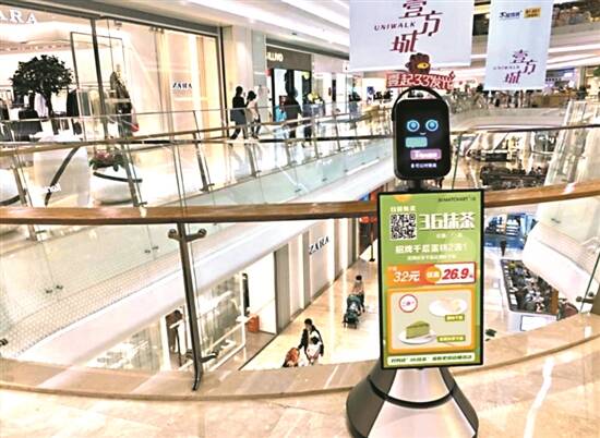 羊城晚报讯 记者王俊摄影报道:在“就地过年”的倡议之下,不少市民选择留在深圳过大年。如何为市民提供丰富多彩的“逛吃”菜单,深圳各大商场铆足全力,利用线上网络直播、满减、会员打折等多种方式,满足市民多样化消费需求。记者近日走访了解到,有商场利用机器人等智能科技设备向市民发放上百种覆盖吃喝玩乐的优惠券,助力餐饮、快消等线下零售企业和商家提振人气,让这个特殊的春节经济保持繁荣,成为一大亮点。 2月1日,记者在深圳壹方城和CocoPark等商场看到,商场内猎豹商场机器人通过“语音+大屏”展示的优惠券,吸引了不少消费者的关注互动。“站住,小可爱”的招揽声让消费者不由自主被这些机器人吸引,此外,机器人为市民提供近80种优惠券,覆盖中西正餐、饮品甜点、小吃美食、美甲美发、健身教育等吃喝玩乐各领域,优惠券力度也较其他常见平台更实惠。选准优惠券后,消费者可直接扫码下单,机器人还可以导航到店,到店出示二维码,快捷买单的同时,无接触消费也更安全。值得一提的是,当机器人感知到1.5米范围内的消费者时,会主动语音提示“公共场合请佩戴口罩哦”,配合商场的其他防疫措施助力抗疫。