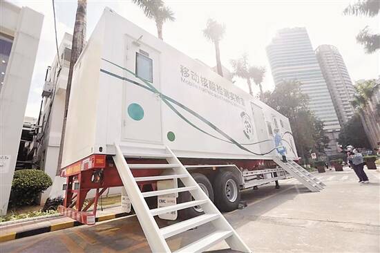羊城晚报讯 记者王俊摄影报道:“这个移动核酸检测实验室日单检量可达到5000人份,自动化程度高,不需要太多人工操作,大大提升了工作效率和检测能力。”2月1日上午,深圳市人民医院发热门诊前,工作人员正忙着安装和调试新来的1台移动核酸检测实验室。记者了解到,为做好新冠病毒核酸检测工作,国家卫健委综合各地医疗卫生资源布局和地理交通等因素,在全国划分8个片区,选取100家大型公立医院、疾控中心建设公共检测实验室。广东省属于第六片区,共有7部移动核酸检测实验室,目前,深圳市有两台正在进行安装和调试,除深圳市人民医院这一台以外,另外一台在深圳市疾控中心。 据介绍,深圳市人民医院的移动核酸检测实验室外形像集装箱,拥有生物安全2级实验室的全部配置,配备核酸扩增所需的三个独立空间——分别为试剂准备区、样本制备区和扩增分析区三个区域。仪器自动化程度高,不需要太多的人工操作,日单检量可达5000人份。该实验室还配备了独立的空调系统,空气过滤系统,负压系统以及高压灭菌系统,对外部空气不会造成任何污染。 据了解,深圳市人民医院的这台移动核酸检测实验室主要负责突发情况下的对外援助使用,常规的核酸检测仍然在该院区的固定实验室内进行。深圳市人民医院为该实验室组建了一支72人的机动核酸检测队伍,在本周实验室完成安装和调试后,只要有疫情发生,即可挂上拖车车头,按照片区(广东片区)进行调配和增援,做到人员、设备以及试剂两小时内出发,迅速抵达疫情发生地,立即开展检测工作。依托移动核酸检测实验室,可突破地域限制,快速、机动提供高效便捷的检测服务,实现“应检尽检”,减少人员流动以及病毒传递的路径和时间,有效控制疫情,也能在疫情过后减少实验室的闲置和浪费。