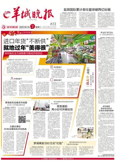羊城晚报讯 记者王俊摄影报道:在“就地过年”的倡议之下,不少市民选择留在深圳过大年。如何为市民提供丰富多彩的“逛吃”菜单,深圳各大商场铆足全力,利用线上网络直播、满减、会员打折等多种方式,满