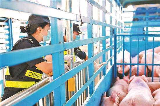 羊城晚报讯 记者钱瑜,通讯员叶卓如、王东涛、俞波摄影报道:5月25日凌晨4时,珠海斗门的供澳门活猪过驳站开始热闹起来,来自广西的210头活猪在站内完成消毒后,被过驳至跨境运输车内,随即赶往拱北口岸通关,供应澳门市场。 珠海斗门供澳活猪过驳站于2020年5月25日正式启用。一年来,经该过驳站过驳的活猪已超62000头,占内地供澳活猪总量的七成以上。 “过驳站启用后,澳门市场的猪肉供应量多了,批发价降了一成左右。这个澳门市民都是有直接体会的,过去晚一点去到市场,可能猪肉都被抢完了,就算买到也是‘贵价肉’,现在猪肉供应可以说是全天无忧。”负责澳门生猪采购的南光集团欧经理说。 作为过驳站的运营管理方,中珠农牧常务副总经理李剑说:“目前,我们站日均过驳活猪已超150头,海关监装、验放也是全年无休予以支持,口岸通关也非常便捷。” 此前,澳门市场生猪以广东省内供应为主,猪源单一、数量较少,也造成一段时间里澳门市场肉价偏高。拱北海关了解到活猪供澳的现实困难后,积极协同澳门、珠海相关部门,在过驳站场地规划、管理制度建设、车辆进出线路设置等方面提出专业指导意见,全力支持过驳站建设。过驳站建好后,海关对车辆行驶GPS轨迹进行监管核查,保障活猪过驳安全。一年来,经过驳站供澳门的活猪货源从广东扩大到湖南、江西、广西等养殖大省,为稳定澳门猪肉价格发挥了积极作用。
