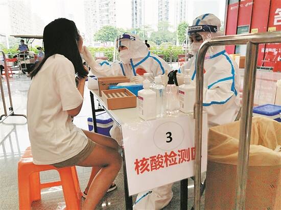 一位市民正在接受核酸检测 羊城晚报记者 景瑾瑾 摄 |