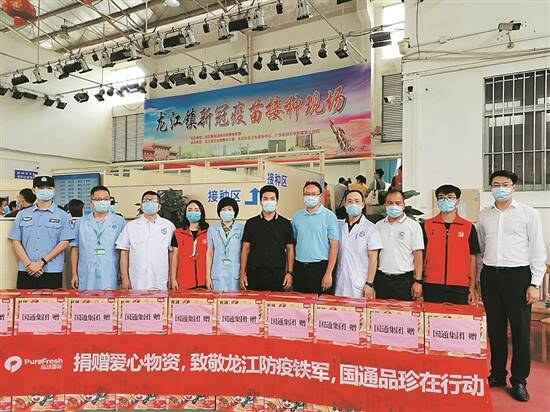 羊城晚报讯 记者欧阳志强、通讯员龙宣摄影报道:6月2日下午,顺德区龙江镇举行“新冠疫苗接种先锋”授牌仪式,为接种率99.5%以上的广东联塑科技实业有限公司、广东南兴天虹果仁制品有限公司分别授予“新冠疫苗接种先锋”荣誉称号,在疫苗“应接尽接”的关键时期为镇内企业再添动力。 据悉,龙江镇为加快疫苗接种工作,早日构筑免疫屏障,开设了企业团队专场预约服务,一方面可以合理安排错峰接种,保障企业正常生产;另一方面精准发动,加快“应接尽接”速度。5月26日,龙江镇还组建了新冠疫苗流动接种点,开展暖企活动,为联塑集团提供“上门接种服务”。 作为龙江镇的龙头企业,联塑集团、南兴天虹果仁公司积极响应、精心组织、合理安排新冠疫苗接种工作。截至6月1日,联塑集团应接种人数6870人,已接种第一针人数6864人,首针接种率达99.9%;南兴天虹果仁制品有限公司应接种人数802人,已接种第一针人数798人,首针接种率达99.5%。 在授牌仪式上,龙江镇党委书记甘志宇、镇长孙春刚分别为这两家企业颁授了“新冠疫苗接种先锋”荣誉牌匾。甘志宇表示,接种疫苗是预防新冠肺炎的有效重要措施,联塑集团等镇内企业积极配合,踊跃接种,既保障了广大员工身体健康,也为社会和经济发展作出了贡献。 在授牌仪式上,受表彰的两个先锋企业代表分别分享了宣传发动员工疫苗接种的经验做法。 当日下午,国通集团也为龙江疫情防控工作加油鼓劲,给龙江镇疫苗接种点的一线工作人员送上慰问品,表示龙江防疫铁军连日来为人民健康、安全坚守一线,非常辛苦。龙江镇党委副书记罗冠明代表龙江镇新冠肺炎疫情防控指挥部接受了爱心捐赠。