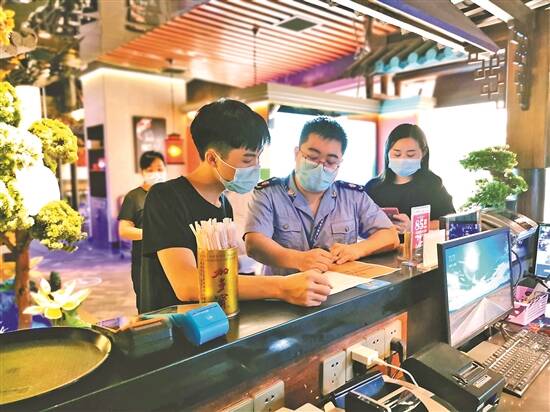 羊城晚报讯 记者景瑾瑾、通讯员邝晓慧摄影报道:根据佛山市日前发布的《关于做好新冠肺炎疫情分级分类防控工作的通告》, 6月1日起,桂城辖区餐饮场所禁止堂食,密闭场所需暂停营业,托管、培训机构暂停线下服务。对此,南海区市场监督管理局桂城市场监督管理所高度重视,迅速响应,立即派出9个巡查组对辖区内各经营场所进行地毯式检查。 5月31日,佛山市发布《关于做好新冠肺炎疫情分级分类防控工作的通告》,根据通告,6月1日起,禅城区石湾镇街道,南海区桂城街道,南海区大沥镇黄岐社区、东秀社区、岐阳社区、洞庭社区、雍雅社区的区域范围内餐饮场所禁止堂食,每个包房不超过10人。全市其他区域原则上不组织大型联欢、聚餐等活动,所有培训机构(含托管)暂停线下服务。进入所有室内公共场所实行预约、错峰、测温、扫(亮)码、佩戴口罩,卡拉OK、电影院、健身房、室内游泳馆、酒吧、洗浴中心等密闭场所暂停营业。 为加强疫情防控,6月1日至2日,桂城市场监督管理所执法人员兵分各路到中海环宇城、越秀广场、万达广场和保利水城等大型综合体内的餐饮企业、各片区小餐饮店和超市开展拉网式巡查,当好防控“劝导员”“宣传员”“巡查员”,逐家上门派发并张贴告示,与经营者传达疫情防控精神,反复劝解暂停现场堂食服务,转变经营模式为外卖或打包服务,并要求其将桌椅堆叠起来,进一步杜绝堂食的可能性。督促经营者落实做好测温、佩戴口罩、亮绿码进店等防疫措施,同时每间包房需登记2—3名就餐人员的个人信息,包括姓名、手机号码等,确保就餐人员可追溯。 同时,执法人员到健身房、培训和托幼机构进行全面巡查,要求商家立即暂停营业并张贴公告,并与综合体物管方进行沟通,严格落实主体责任,督促经营户做好防控措施。 桂城市场监督管理所利用企业和社区微信群、QQ群第一时间发布疫情防控最新要求,充分发动社区和城市综合体物管方的协管力量,扩大宣传覆盖面,实现联防联控。截至6月2日中午,桂城市场监督管理所共出动执法人员102人次,巡查餐饮单位514家次、培训和托幼机构50家次、健身房21家次。