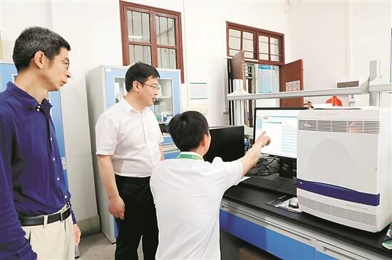 杨洲(中)在科研实验室调研 嘉应学院供图 |