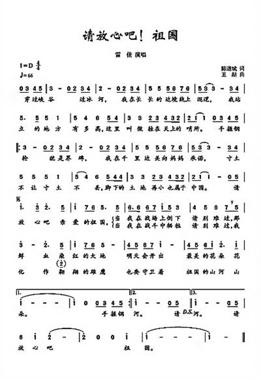《请放心吧!祖国》曲谱 |
