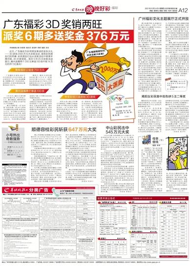 广东福彩3D奖销两旺 派奖6期多送奖金376万元