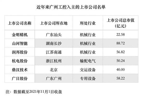 近期广州工控在资本市场可谓收获颇丰。除润邦股份外,广州工控还成为广日股份(600894)间接控股股东,由此,广州工控已拥有6家上市公司,其他四家是:金明精机、山河智能、杭电股份、鼎汉技术。