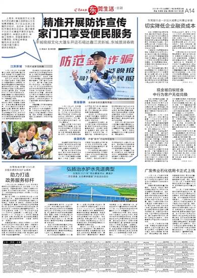 文/周晓玲 图/常思雯 上周末,羊城晚报文化大篷车开进石碣达鑫江滨新城以及东城景湖春晓,为小区业主送上金融防诈知识。活动中,各参与机构开展各类互动活动,通过寓教于乐的方式精准开展防
