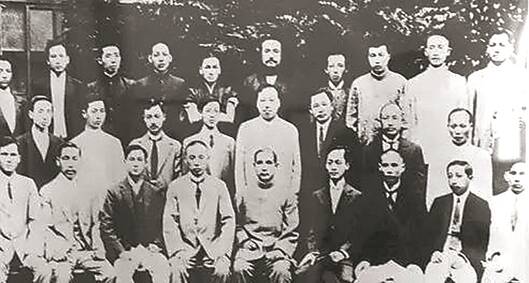 1914年,中华革命党在日本成立时留影,廖仲恺(一排右二)任该党财政部副部长 惠仲宣供图 |