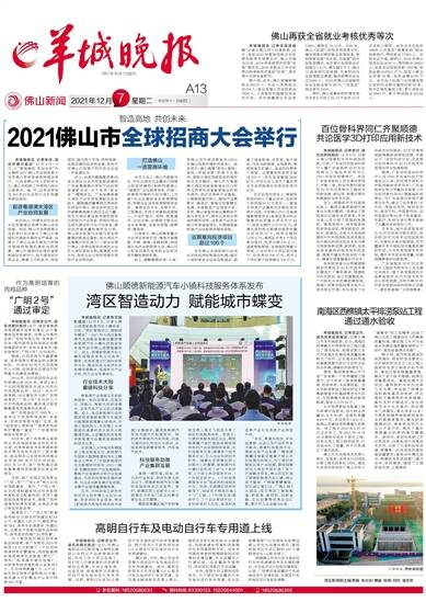 195年10月1日创刊 佛山新闻 2021年12月7日 星期二 辛丑年十一月初四 A13 手机报料:18520686633
