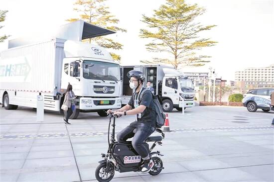 开幕式户外展区,一辆氢能自行车正在展区中展示性能 主办方供图 |