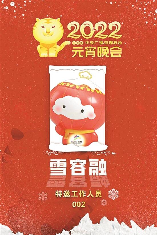 近日,中央广播电视总台2022元宵晚会官宣,人气爆棚的2022北京冬奥会吉祥物冰墩墩、雪容融将要加盟晚会。官方还发布了编号分别为“001”“002”的“特邀工作人员”工作证,并幽默配文道“证件照放不下冰墩墩、雪容融的小脸”。