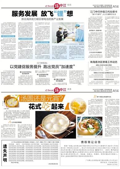 2022年2月15日/星期二/ 湾区新闻部主编 责编 黄铁安 / 美编 黄文倩/ 校对 黎松青