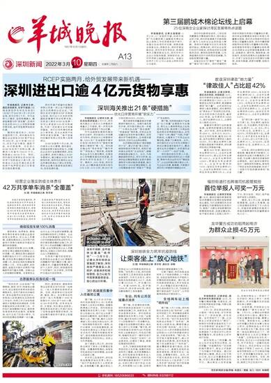 羊城晚报讯 记者宋王群,通讯员别丽芳、甘梦竹报道:《区域全面经济伙伴关系协定》(RCEP)于2022年1月1日正式生效,至今已有2个月。作为全球人口最多、经贸规模最大、最具发展潜力的“朋友圈