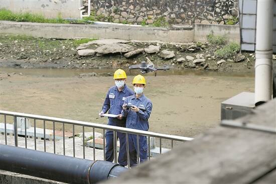 5月10日,东莞城区供电局工作人员利用无人机对江河一带排涝站进行检查 余日辉摄 |