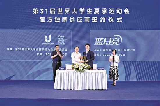 5月10日,第31届世界大学生夏季运动会官方独家供应商签约仪式暨新品发布会在成都成功举办。会上,蓝月亮宣布成为第31届世界大学生夏季运动会官方独家供应商,并发布蓝月亮运动型洗衣液系列新品,为世界大学生运动会洁净护航。