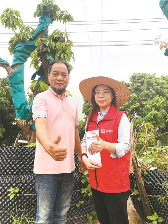 文/周晓玲 图/受访者提供 5月,东莞进入暴雨多发季节。最近,东莞人保农险小组专员李俊愉忙着给农户宣传防灾减灾知识,每天到荔枝林里查勘受损情况,为农户办理农险理赔。为了做好农业生产保障,李俊愉深入村社为荔枝农户推广政策性农险,帮助村民转移风险。务实精神加上温暖的服务态度换来的是农户的认可,当地农户都亲切地称李俊愉为“荔枝西施”。李俊愉还是农险小组唯一的女性,身材娇小,但也同男同事一样吃苦耐劳,她总是跟身边的同事说“为农户做好事,再烂的泥路我也愿意走”。 “中国荔枝看广东,广东荔枝在厚街”,种植荔枝是东莞厚街农户的重要经济来源。李俊愉是厚街大迳人,她的爷爷也是荔枝农户,她切身体会过恶劣天气以及病虫鼠害给农户造成的损失。政策性农险由市镇两级政府提供80%的补贴,农户只需自付20%的保费,能有效减轻农户负担,减少农户的经济损失,是实实在在的惠农政策。本着为乡亲做好事的初衷,李俊愉与东莞人保的同事们走进村委合作社开展政策性农险宣导会,想方设法为农户带去保障。 刚开始接触政策性农险,不少农户提出了质疑。作为本地人,李俊愉用客家话与乡亲们拉近距离,宣讲政策性农险;同时,组建群组,随时为农户答疑解惑;以保险意识较强的农户为突破口,带动其他农户投保。经过李俊愉的努力,2021年3月底,大迳合作社400多户果农中,有255户购买了荔枝险。 2021年5月30日,东莞发生特大暴雨,李俊愉和她的同事们第一时间赶到荔枝林现场查勘损失情况。由于天气不稳定,雨水不断,荔枝林里都是泥路、烂山路,李俊愉在查勘中摔了几跤,浑身湿透,仍坚持扎实完成查勘工作。最终,大迳合作社投保的农户大多数得到了赔偿。农户切身体会到政策性农险带来的好处,今年年初纷纷打电话给李俊愉,主动要求投保。 “荔枝西施”李俊愉仅是东莞人保农险工作人员的一个小小缩影。据了解,东莞人保高度重视农业“保、防、救、赔”工作,本着为农户办实事的宗旨,在推广农险时尽量做到应保尽保,让农户享受到国家政策性岭南水果保险的福利。在承保期间,定期对合作社和农户进行防灾减灾宣传工作、了解农户的防灾预防措施及给予防灾建议,送上雨伞、水靴等防灾物资。在发生损失时,给予农户及时的支援,以免发生二次损失,尽量把损失降到最低。在确定损失后,在合规情况下尽快赔付。2021年,东莞人保政策性农业保险赔付支出531.2万元,综合赔付率102.9%。