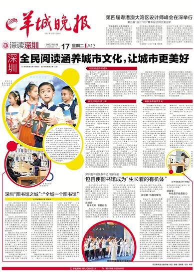 文/羊城晚报记者 郑明达 去年,《深圳推进“图书馆之城”建设》入选国家发改委公布的《深圳经济特区创新举措和经验做法清单》,“图书馆之城”近二十年来锐意创新、先行探索的建设经验再次引发关注。 2003年,深圳市委市政府启动实施“文化立市”发展战略,提出打造“两城一都”(“图书馆之城”“钢琴之城”“设计之都”)的重要目标。经过近二十年的探索和实践,深圳“图书馆之城”建设实现了跨越式发展。 截至2021年底,全市共建成公共图书馆(室)733家(其中,市级馆3家、区级馆9家),比2003年“图书馆之城”建设伊始的226家,增长了2倍以上,初步构建了“十分钟阅读服务圈”。加上遍布全市的306个城市街区24小时自助图书馆,形成了覆盖全市所有街区的公共图书馆网络体系,是名副其实的“千馆之城”。 “图书馆之城”建设形成了独具特色的“深圳模式”——以“开放、平等、免费”为服务理念,以“全城一个图书馆”为发展目标,以“市级中心馆+区级总分馆”为运转架构,以服务创新和技术应用为驱动,实现全面合作与共享的区域发展模式,并打造了“4·23世界读书日·共读半小时”“阅在深秋”等诸多具有广泛影响力的读者活动品牌。2021年,“图书馆之城”统一服务平台共有56.16万读者到访借过实体文献,共举办各类读者活动1.95万场次,极大地促进了全民阅读,丰富了市民的精神文化生活。 深圳以立法引领顶层设计,率先在国内颁布《深圳经济特区公共图书馆条例(试行)》《深圳经济特区全民阅读促进条例》两部地方性法规,将图书馆事业纳入法制轨道。每5年更新出台的专项发展规划也保证了政策上的延续性。结合城市实际,深圳逐步完善构建了以“市级中心馆+区级总分馆”为架构的特大城市总分馆制。 聚焦科技支撑,深圳“图书馆之城”线上线下服务两翼齐飞。一是以“一个平台”实现“全城一座图书馆”——打造“图书馆之城”统一服务平台,实现全市公共图书馆资源与服务“共建共享、互通互连”,真正做到“全城一座图书馆”,市民可在加入统一服务的任一公共图书馆享用标准化的优质均等服务。二是以“一个资源库”满足读者多元化需求。建成“数字阅读馆”,整合QQ阅读、云图有声数字图书馆等13家阅读资源库,集成“深图视听”“深图记忆”“深图书单”等本地资源,资源总量30余万种,累计建成包括“深圳记忆”等93个数字资源库,涵盖人文、经济、科学等领域,打造本地人文学科智库,满足不同读者群体的需求。三是以“一张互联网”提供随时随地的服务体验。依托官方网站、微信公众号、微信和支付宝城市服务平台等大力开展“互联网+”图书馆服务,将读者证办理、图书预约借阅、馆藏资源查询、附近服务网点查找等服务同步搬到线上,市民通过手机、电脑等终端即可办理业务。