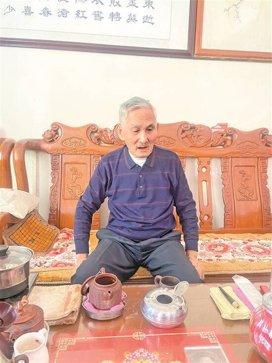 86岁的老人翟耀彭回忆在宗祠的儿时往事 李海婵 摄 |