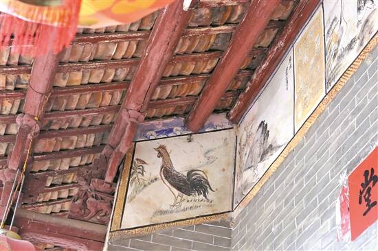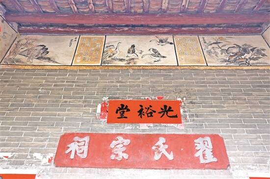 翟氏宗祠墙楣上画有多幅壁画,后代在原有壁画的基础上上色 |