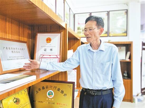 羊城晚报记者 赵映光 实习生 郑嘉敏 驱车前往位于双髻娘山“髻冠”的潮州市饶平县金利香生态茶园,漫长的盘山路在郁郁葱葱的山林中蜿蜒而上,雨天云雾缭绕中,许多弯多陡峭的狭窄路段不禁让人头皮发麻、心生忐忑。 不过,对于王金良来说,这条九曲十八弯贯通山里山外的“茶路”,却是他把茶种好制好、承载和传播工夫茶文化、帮助茶农脱贫致富的“康庄大道”。而这,也是他历经世道沧桑后仍能以开天地的气魄赌上全部身家再创业的初心所在。 匠心传承茶文化 从饶平县城出发,大约80分钟车程后,便可抵达王金良的生态茶园。眼前这位精神矍铄、身形清瘦、在茶园之中仍健步如飞的老者,很难让人相信他已有80岁高龄了。 “我的兄长王两金生前是制茶名家,我从小就跟在他身边,对茶的了解打下了很好的基础,上世纪60年代则开始跟着他学习制茶。”待坐定,几杯茶汤下肚后,王金良便热情地带着笔者参观了他的制茶车间和荣誉陈列厅,详细介绍了各种自己精心设计制作的制茶设备和相关奖项。 “大量的茶叶已无法仅通过人工揉捻和用双手炒制了。”王金良说,茶产业的快速发展使得传统人力操作已无法满足市场需求,根据多年的制茶经验,他探索出一套科学严格的制作流程——摇青时的转速,摇青的时间和投茶量等,每一个制茶的工序,他都有严格的规定,确保每一批茶都有好的品质。 在王金良看来,要生产出茶中珍品就要遵循“地利、天时、人和”的原则,即最佳土壤繁殖、最佳天气采摘、最佳人工制作。“茶树栽培中的阳光调度,茶叶制作中的吐香、发酵、烘焙时间及温度高低掌控,均要恰到好处才行。”王金良说,严格的规范每个制茶工序,使得他生产的多个品种单丛茶,受到消费者的普遍欢迎,也多次获得各项荣誉奖项,在业内有一定知名度。 从培育品种到精心采摘再到制作冲泡,王金良对工夫茶的每一个环节都全身心投入。在他看来,茶不仅是茶,还是一种文化,是茶人的一种精神。因此,他至今仍难以理解一些不用品茶就能完成茶叶买卖的网购行为,“品茶卖茶需要面对面的交流,这是工夫茶的传统,我希望茶文化能随茶一起传承。” 开茶山承载责任 有人说王金良很固执,对此他并没有否认,只是始终认为只要把茶种好制好就一定会有市场。 为此,在自己的茶叶生意已有一定规模的情况下,王金良在年近六旬的时候又萌生了再创业的想法。此后,他曾多次走进饶平的深山,频繁考察了大量野生古茶树,把握山阴、山阳的特点,洞悉土质、日照、风速等自然生态情况。 最终,王金良把再创业的目光聚焦在海拔1036米、自然生态得天独厚的双髻娘山。“当时开辟这片茶山,仅是用机械开山修路就用了两三年,投入资金更是以百万元计的。”王金良介绍起自己开茶山的经历,一下子打开了话匣子。 64岁那年,王金良毅然决定在千米高山开辟茶园。当时,许多亲戚朋友都认为这是一件高风险的事情,需要赌上全部身家,因此大多持反对意见。 但王金良并没有就此停步,他不断在山上山下,村里村外奔波,与村民茶农沟通协商,坚持修路,并将一些二三十年的茶树移植到700-1000米的山上。 据王金良介绍,他开辟茶园背后其实还承载着茶人的一份责任。原来,早在上世纪40年代,潮汕地区首个博士、饶平“文化奇人”张竞生博士就曾在当地开展振兴农村实验活动,组织民众在双髻娘山种茶,开办了多个茶园,王金良的金利香生态茶园中就有70年前张竞生博士茶园遗存下来的痕迹,并可见少量老茶植株。 “云雾缭绕,山谷的雾气直腾而上,不开辟出来种茶实在可惜。”王金良说,他十分敬佩张竞生博士的眼光,如今他正是跟循着张竞生博士的足迹,打造生态茶园,为后人留下更多老茶树。 如今,实践证明王金良多年的坚持是对的——他创建的金山湖生态茶园已发展成为市级农业科技示范基地、农村扶贫龙头企业、韩江师范学院实验示范基地;金利香生态茶叶有限公司产品也已成为了广东省名牌产品。