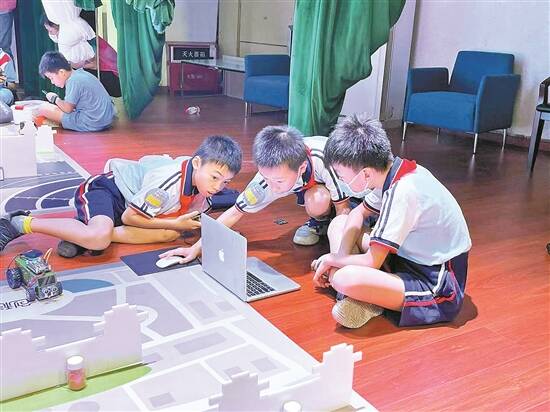本次活动设置了科幻绘画、智能机器人和无人机竞技三个比赛项目。智能机器人作为今年的新项目,为活动注入新能量,也吸引了一拨学子的热情参与。本次参赛主题非常与时俱进,随着科技的不断进步,军事武器也将科技化和智能化,赛事要求选手在模拟军事情景中,控制机器人完成指定任务,以此培养小学生的科技创新精神和实践能力。赛事分低年级组和高年级组,低年级组选手通过实体代码积木块编程控制机器人,高年级组则通过电子模块完成任务,不同任务不同要求,既考验了选手对知识技能的掌握,对他们的团队作战能力也提出高要求,现场只见选手们都信心满满,准备充足,队员间“协同作战”,顺利完成任务。