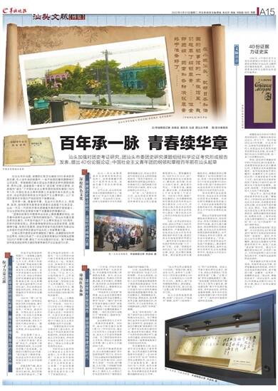 1922年,《中国社会主义青年团纲领》《中国社会主义青年团章程》在汕头外马路的适宜楼旅馆起草。这段历史,需要通过研究无数的史料进行反复考证。 课题组成员在研究中国共青团团史时,了解