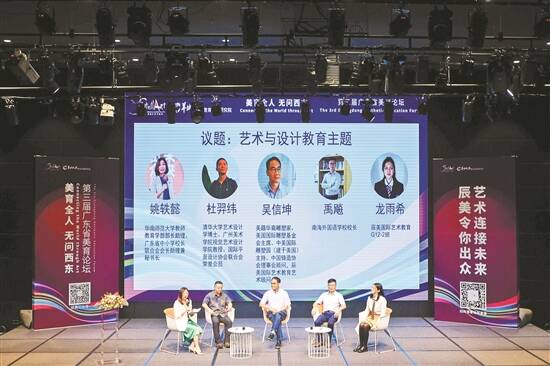 文/羊城晚报记者 王沫依 实习生 林文惠 陈郁涛 通讯员 郑少玲 图/校方提供 在多元文化碰撞共生的当下,如何行走出一条融合东西方精粹的美育人才培养之路?5月28日,继2020年“五育并举,美育全人”广东省首届美育教育论坛、2021年“启智润心,美育全人”广东省第二届美育论坛后,辰美国际艺术教育(英文简称SISA)继续携手羊城晚报教育发展研究院,举办第三届广东省美育论坛暨SISA校园开放日,邀请教育和艺术大师共聚一堂,畅谈美育路上的文化交融与差异。 今年活动以“美育全人,无问西东”为主题,聚焦美育的东西方融合,通过互动体验、成果展示、教育大咖主题演讲、圆桌对话等形式,呈现了一场关于欣赏美、创造美、领悟美的文化盛宴。正如辰美国际艺术教育校务委员会主席黄秋艳所言,国家和人才的竞争力蕴藏在每个人的内在创造力与审美力中,未来人才需要具备认识美、体验美、感受美、欣赏美和创造美的能力。而在羊城晚报教育发展研究院执行院长陈晓璇看来,“美育全人”与“无问西东”的双剑合璧,是国家重提美育重要性初衷的绝佳诠释。 【现场掠影】 以创意点亮“明日艺术家”的主会场 SISA艺术主题校园开放日,是辰美国际艺术教育向来宾亮出的一张魅力名片,也是辰美“明日艺术家”的主会场。穿行于开放日的活动现场,凡目之所及,皆是艺术灵感与创新思维所浇灌出的果实。 一大早,艺术市集就按下启动键,不同学院的学生顺利开摊,以新奇的点子和富有美感的产品留住了来客的脚步。流连于各个摊位前,不仅可以选购经过精心搭配的花艺产品,表现力与感染力十足的超轻黏土摆件、陶艺作品,还能在口渴之时点一杯颜值与口感兼具的自调饮品,一扫疲倦。 艺术不止产品,还有体验和服务。泥艺创作、超轻黏土作品、定制专属素描画像、亲手制作热缩片钥匙扣,契合时下消费特点的创意被转换成卖点,让观众在十足的参与感中近距离感受美的魅力。更有辰美戏剧骑士团的戏剧大排档,拿起手中的遥控器,就可欣赏一出无缝切换的精彩即兴表演,现场不时传来的笑声说明了一切。 时间轴推至傍晚时分,“第三种语言”为主题的SISA首届时装秀缓缓拉开序幕,为大家献上了一场精彩绝伦的视觉盛宴。辰美师生团队精打细磨,自编自导自演,当模特穿着一件件堪称艺术品的衣服徐徐走来时,全场观众屏息凝气,无不被辰美学子展现出的非凡风采所吸引与震撼。 【精彩课程】 SISA艺术主题活动日:多学科课程体验,共赴艺术之旅 在辰美,学生在课程上有哪些选择?这些课程如何相互配合,为学生带来跨学科的艺术知识学习体验?在活动当天,共有包括英语、中文、数学、全球视野、商科、艺术与设计、音乐七大学科和国际雕塑大师工作坊等11节公开课开放,为家长和学生带来原汁原味的辰美课程体验。 一块不起眼的泥巴,如何变成栩栩如生的泥塑?在大师工作坊,国际雕塑艺术家、美国国际雕塑基金会主席吴信坤亲手给出了答案,而中国教育学会副会长吴颖民则成了他的专属模特。泥巴在吴信坤的手中翻飞、揉搓、塑型、抚平,一个人像便初现雏形,稍作休息后,吴信坤利用刻刀等工具对人物细节进行处理,从眼眶、唇形到衣领,原本柔软的泥土变得生动立体起来,最终呈现的那一刻,现场自发地响起了阵阵掌声,无不为吴信坤大师精湛的技术所折服。 “眼睛就像相机,捕捉到特征后就要立刻反应在手上,这是雕塑的基本功,需要日复一日的训练。”在休息的间隙,吴信坤向大家分享了关于雕塑的小知识。而面对羊城晚报学生记者“雕塑是不是越像越好”这一问题时,吴信坤表示,作为雕塑,如实反映是必然,要做到“完全一致”,诸如3D打印等技术可以做到最大限度地复制,但那更像是标本而非艺术,艺术需要有生气,需要“源于生活,高于生活”,不是简单地“越像越好”。他鼓励孩子们从生活中发现艺术、发现美,并通过努力学习来提升自己的审美能力和创造能力。 在另一边,辰美艺术设计专业的“表情画廊”主题课程让前来体验的学生听得入了神。两位授课讲师Zoy Chen和Vicky Li以艺术拼贴画示例,启发学生以此为灵感,运用相关软件分组制作微信表情包。两位讲师还展示了许多网络上的表情包案例,这些表情包以名画为创意切入点,通过其中元素的变动,又或使其动态化,在微信平台广泛传播的表情包由此被制作出来。 【美的一课】 中国教育学会副会长吴颖民: 只有理解文化差异才能促进文化融合创新 吴颖民会长连续三年坐镇美育论坛,每年都会给论坛带来精彩的主旨报告。今年的论坛现场,他以活动的主题作为主旨报告的主题,给大家深度剖析“美育全人,无问西东”,带来了颇具深度的美的一课。 为了上好这一节课,吴颖民进行了深入的思考,从“只有理解文化差异才能促进文化的融合创新”的论点入手,附以实例加以印证。他大量引用了包括建筑、民居、服装、绘画、雕塑等具象文化进行中西对比。比如,中国文化是典型的大陆文化。由于长期的农耕生产方式,人们依靠自然和土地生存,依靠集体力量发展生产,战胜自然灾害。中国雕塑有一种崇尚含蓄、内敛、集体力量的审美观念。而西方文化是一种典型的海洋文化。这种文化崇尚冒险和征服,因此提倡个人权利、英雄主义。在雕塑艺术上的体现,便是突出英雄气质和外向奔放的审美情趣。 接着,他从