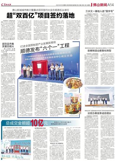羊城晚报讯 记者欧阳志强报道:5月31日,“万亿佛山强中心”2022年佛山新城城市推介暨重点项目签约大会在顺德区乐从镇举行。本次推介会共签约2个城市品质提升项目、3个重点产业项目,共有9个楼宇载体