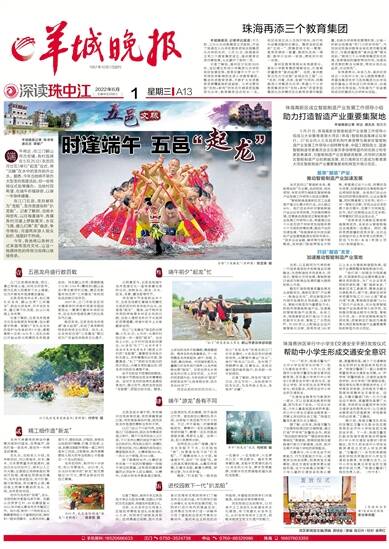 1957年10月1日创刊 深读珠中江 2022年6月1日 壬寅年五月初三 星期三 湾区新闻部主编/责编 黄铁安 / 美编 陈日升 / 校对 余燕红 手机报料:1