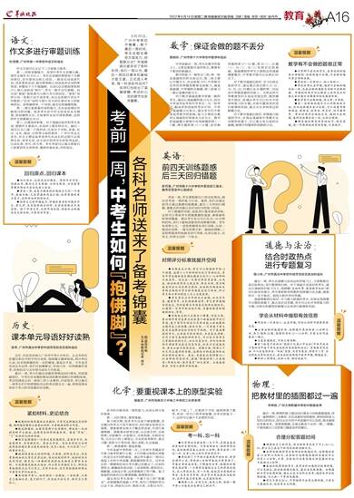 文\羊城晚报记者 何宁 图\视觉中国 6月20日,广州中考将拉开帷幕。剩下最后一周时间,考生还能在哪些方面发力,挖掘提分点?羊城晚报记者采访了各科名师,他们一致认为,最后一