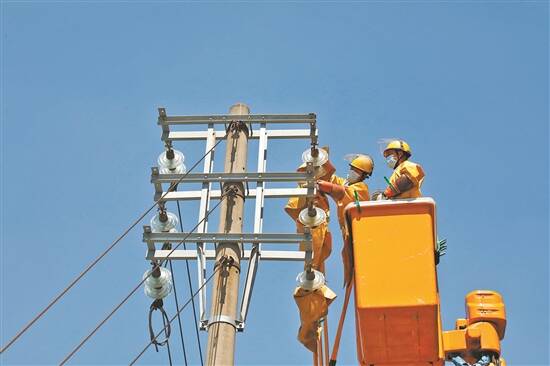 顺德供电局工作人员顶着烈日开展带电接火作业,提高供电可靠性 刘酩诗 摄 |