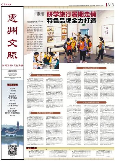 2022年7月29日/星期五/ 湾区新闻部主编/责编 朱光宇/ 美编 刘苗/ 校对 谢志忠 惠州文脉 新闻为眼·文化为脉 <第116期> 2022年7