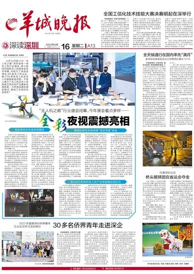 文/图 羊城晚报记者 沈婷婷 8月10日至12日,“无人机之都”深圳迎来一场无人机行业盛会,第七届深圳国际无人机展览会拉开序幕,共吸引了来自全球近300家无人机企业,携2700多款
