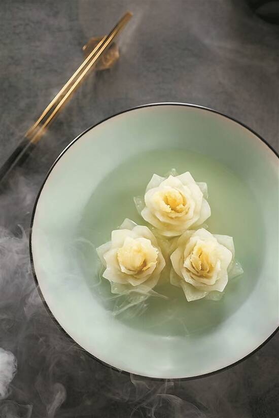 洪彪说:“‘不时不食’的饮食理念在广州人心中根深蒂固,在烹制法式餐品时,借鉴广州人的饮食文化和智慧,往往能研发出不少佳品。”洪彪以一道清远鸡虫草花石斛法式清汤,阐述自己对岭南饮食文化的理解。这道汤选用了清远乌鸡、石斛、虫草花等传统食材,结合经典法式烹调技巧,煨出鲜甜清汤。洪彪说:“以岭南食材烹制出不一样的风味,赋予它们更丰富的味觉和灵魂,是我一直在坚持做的事。”