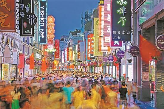 广州夜经济繁荣,图为游客熙熙攘攘的步行街 广东省旅游规划与营销协会供图