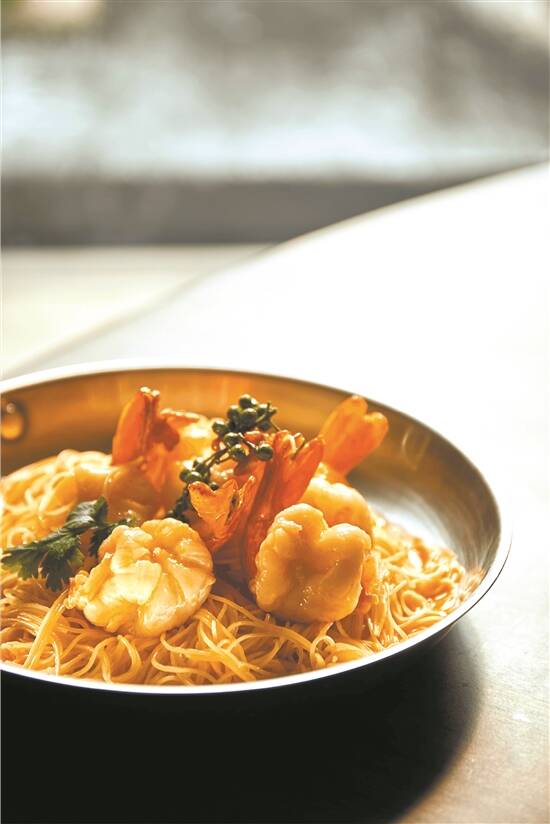 人们常说,一个城市最地道的风味美食,往往是隐藏在街头巷尾的小馆子里,但在广州,却不按这一常理出牌。在广州“海拔最高”的五星级酒店里,除了能品尝高端筵席硬菜,还能吃到诸如白灼牛双弦、传统面豉蒸猪肉、古法凉瓜炒牛肉这些地道家常粤菜。“家常味道入口要有惊喜,背后工夫很多,也最考厨师功力。” 广州瑰丽酒店行政副总厨、中餐厅广御轩掌门人冯永彪说。而他的“广式”实用餐饮哲学,是“不求花巧,好吃为先”。